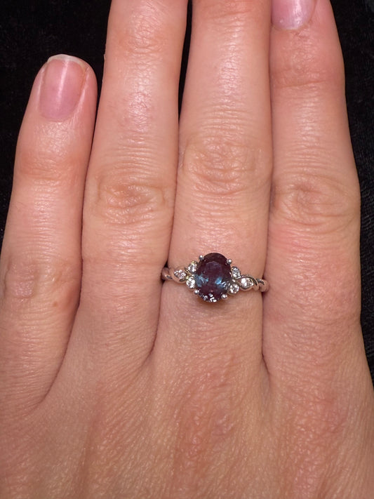 14k White Gold Fashion Ring With Oval Amethyst