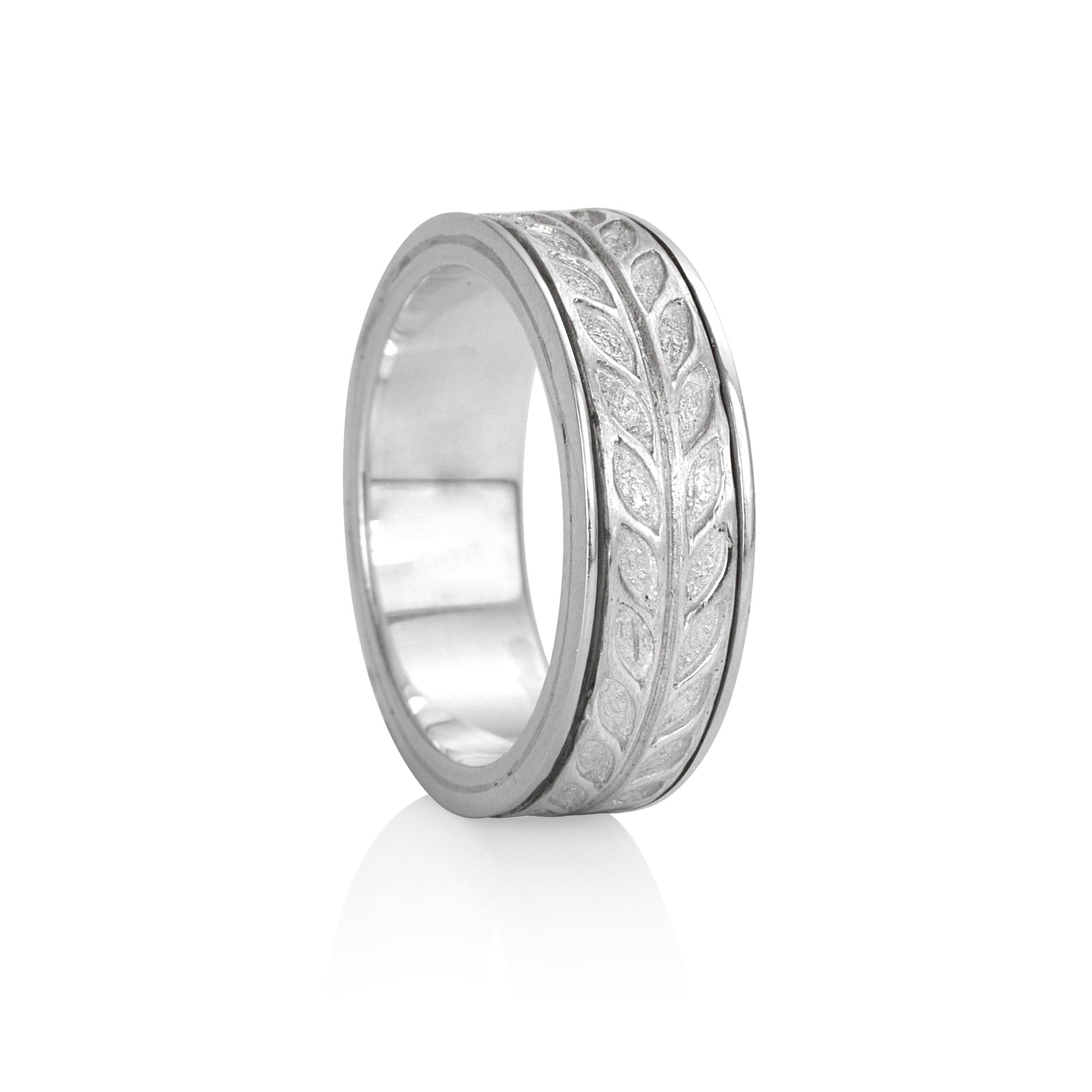 Sterling Silver Meditation Ring with brushed leaf pattern spinning band